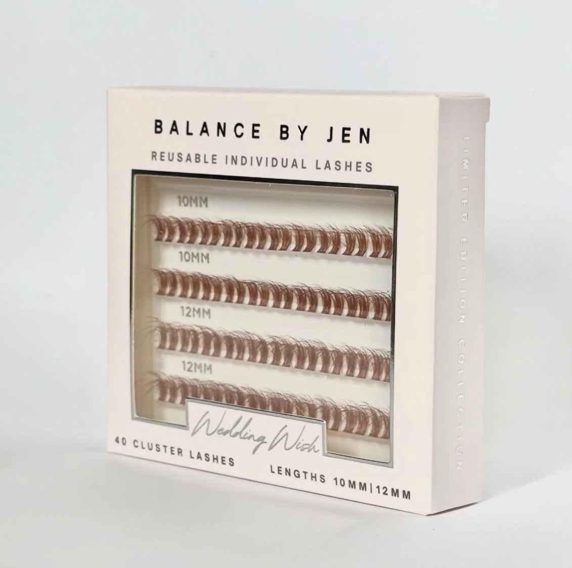 Introducing style 'Wedding Wish' - The perfect choice for people who love a more custom natural lash look. Designed with brides in mind they beautifully flatter the eyes. These lashes come in individual clusters lengths 10mm and 12mm, to allow for maximum customization. These lengths will seamlessly blend with your natural lashes to create a perfect look.